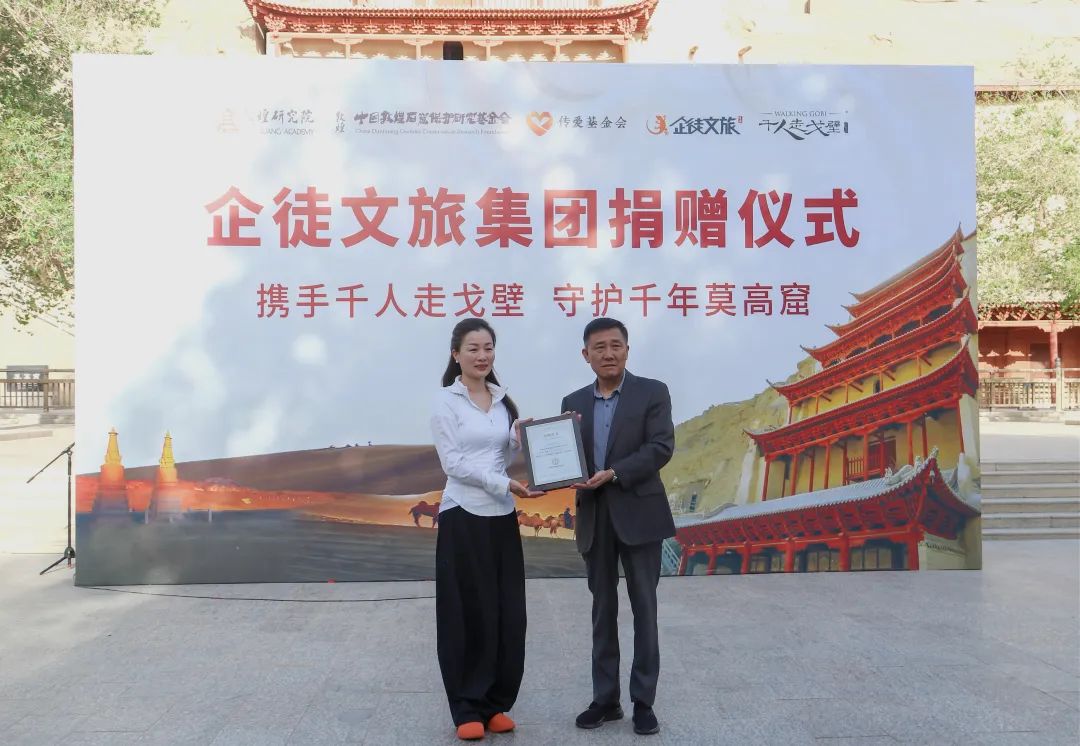 2025年5月19日,企徒文旅集团在敦煌举行了一场意义非凡的捐赠仪式,集团向中国敦煌石窟保护研究基金会捐赠善款,为敦煌石窟保护事业注入新的活力。