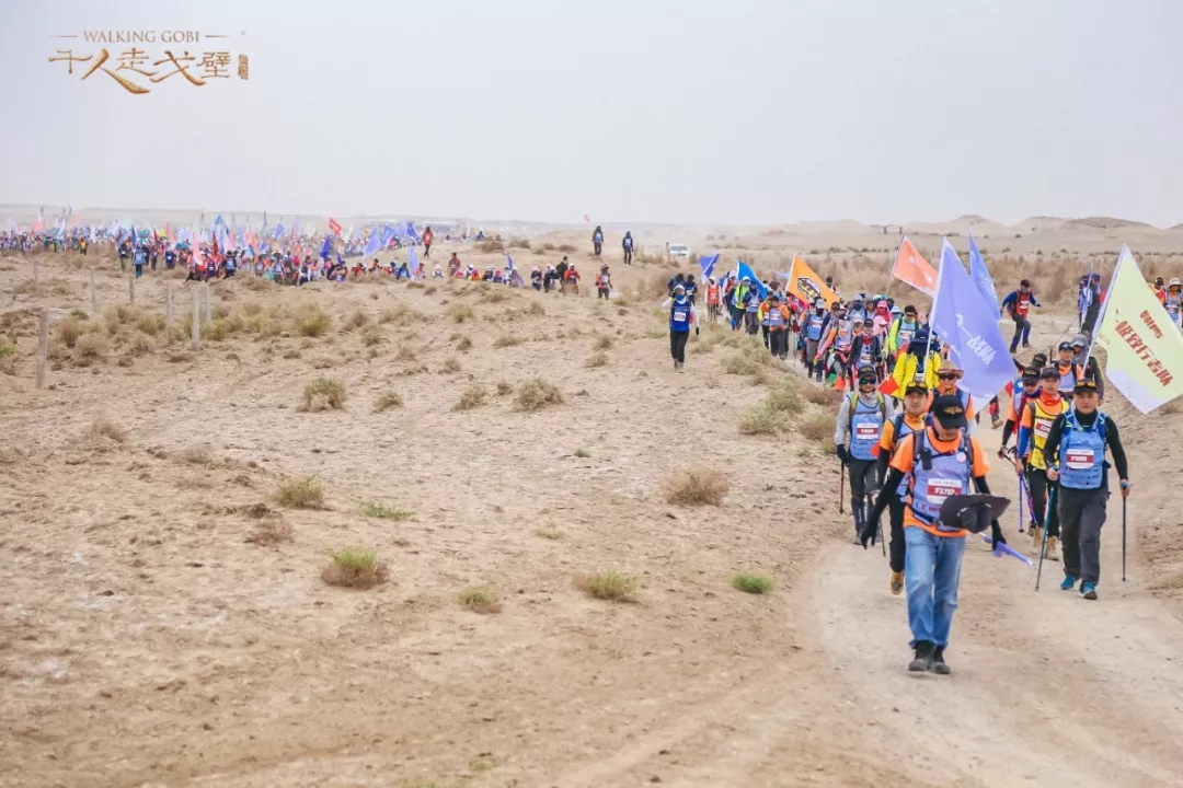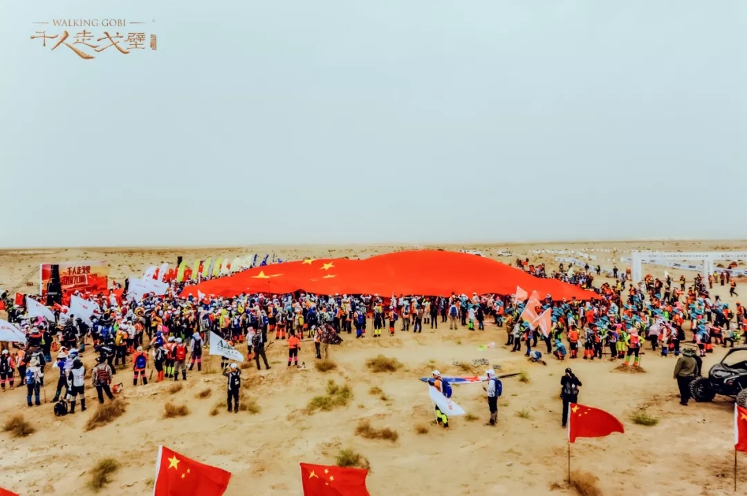 据甘肃卫视报道,5月16日上午,敦煌规模最大、人数最多的徒步赛事——第三届千人走戈壁国际商界精英挑战赛在敦煌碱泉子“开拔出征”。出征仪式现场,一面超大的五星红旗伴着千人合唱,奏响了献礼新中国成立70周年的华美乐章。